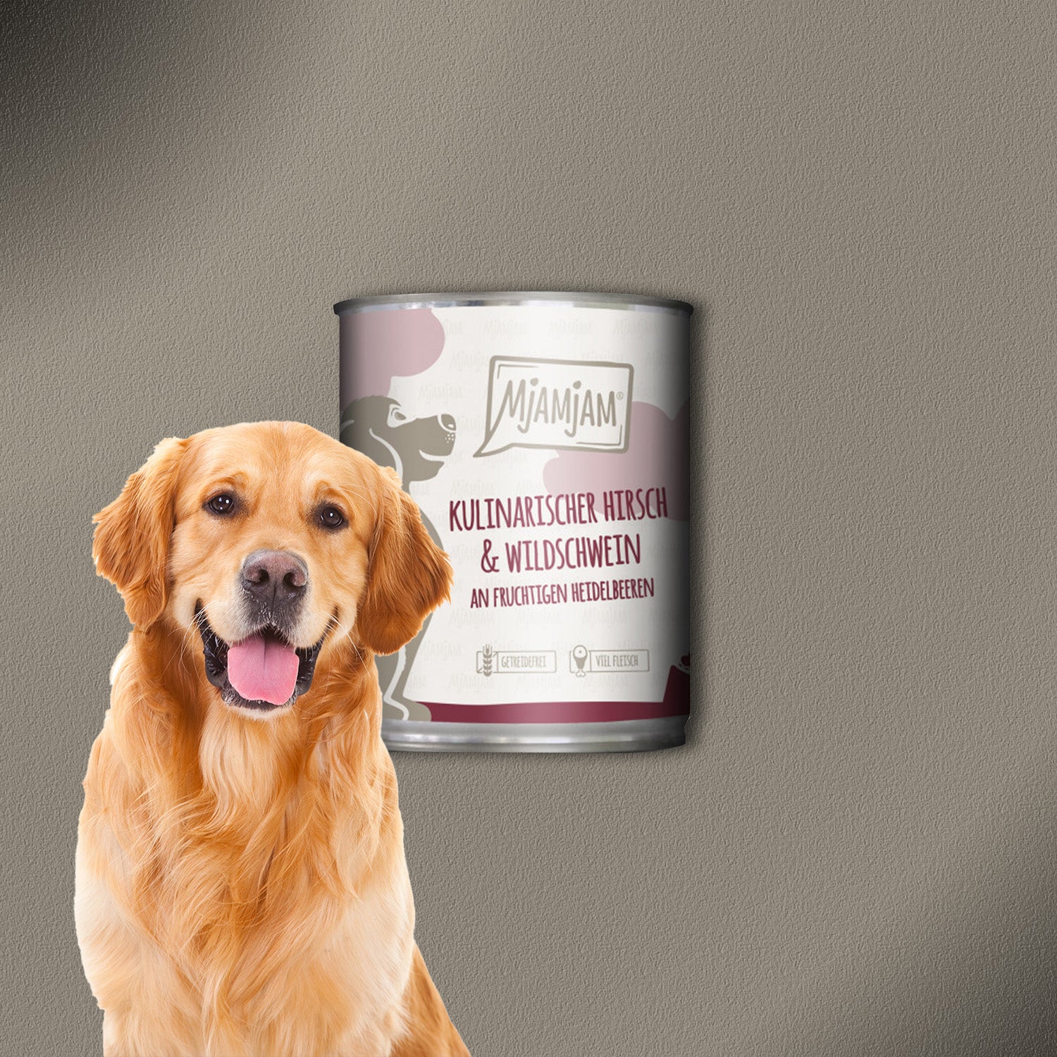 30x800g MjamMjam Kulinarischer Hirsch & Wildschwein an fruchtigen Heidelbeeren