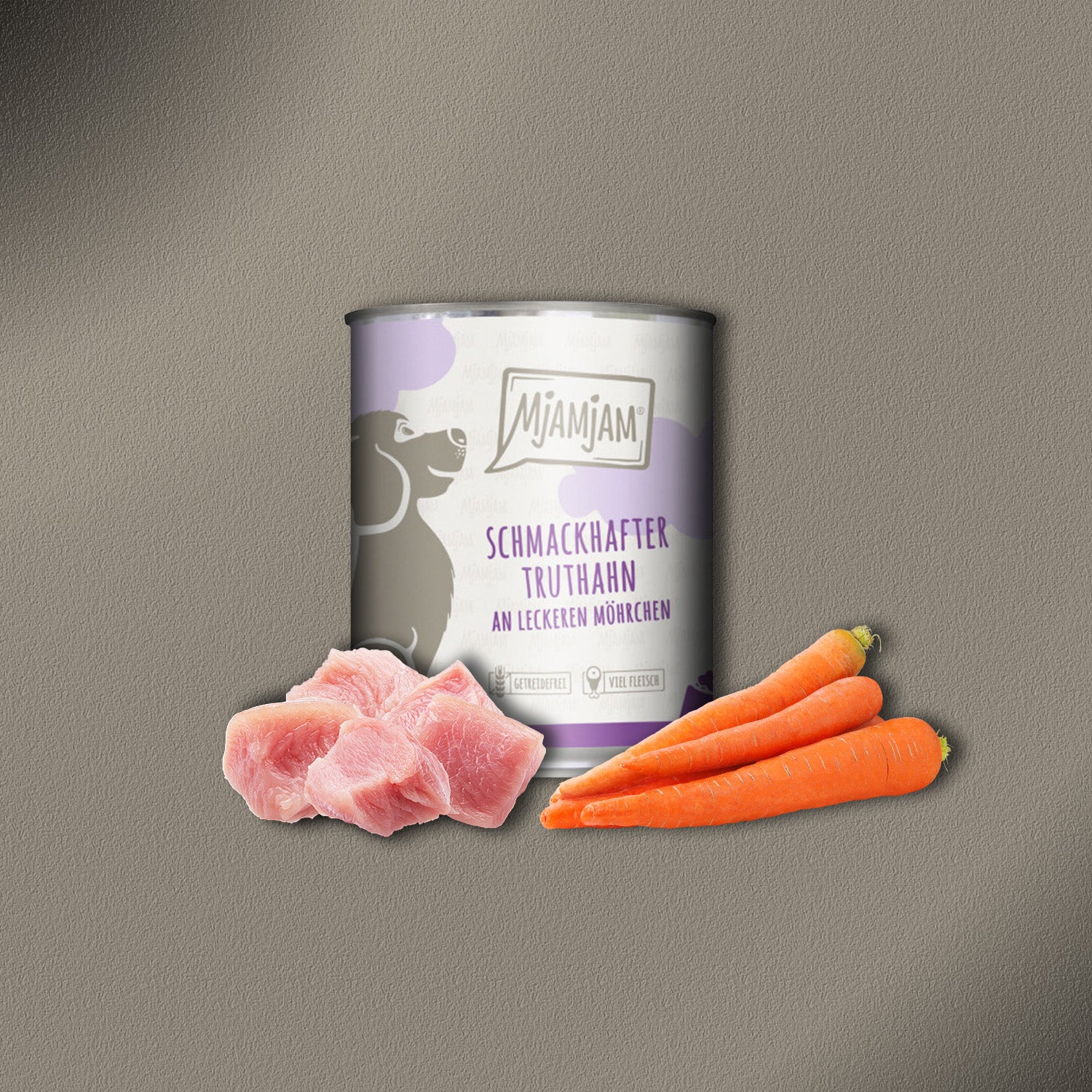 Mit MjAMjAM – Schmackhafter Truthahn an leckeren Möhrchen fütterst du deinem Hund Natur pur. Frischer Truthahn kombiniert mit knackigen und gesunden Möhrchen ist ein einzigartiges und exklusives Genusserlebnis, das ihn zugleich mit allen wichtigen Vitaminen und Mineralstoffen versorgt. „Artgerecht, natur- und beutenah“ – dies steht bei uns für einen sehr hohen Fleischanteil. Auf Getreide, Zucker, Konservierungs- oder Geschmacksstoffe sowie synthetische Bindemittel wird vollends verzichtet.