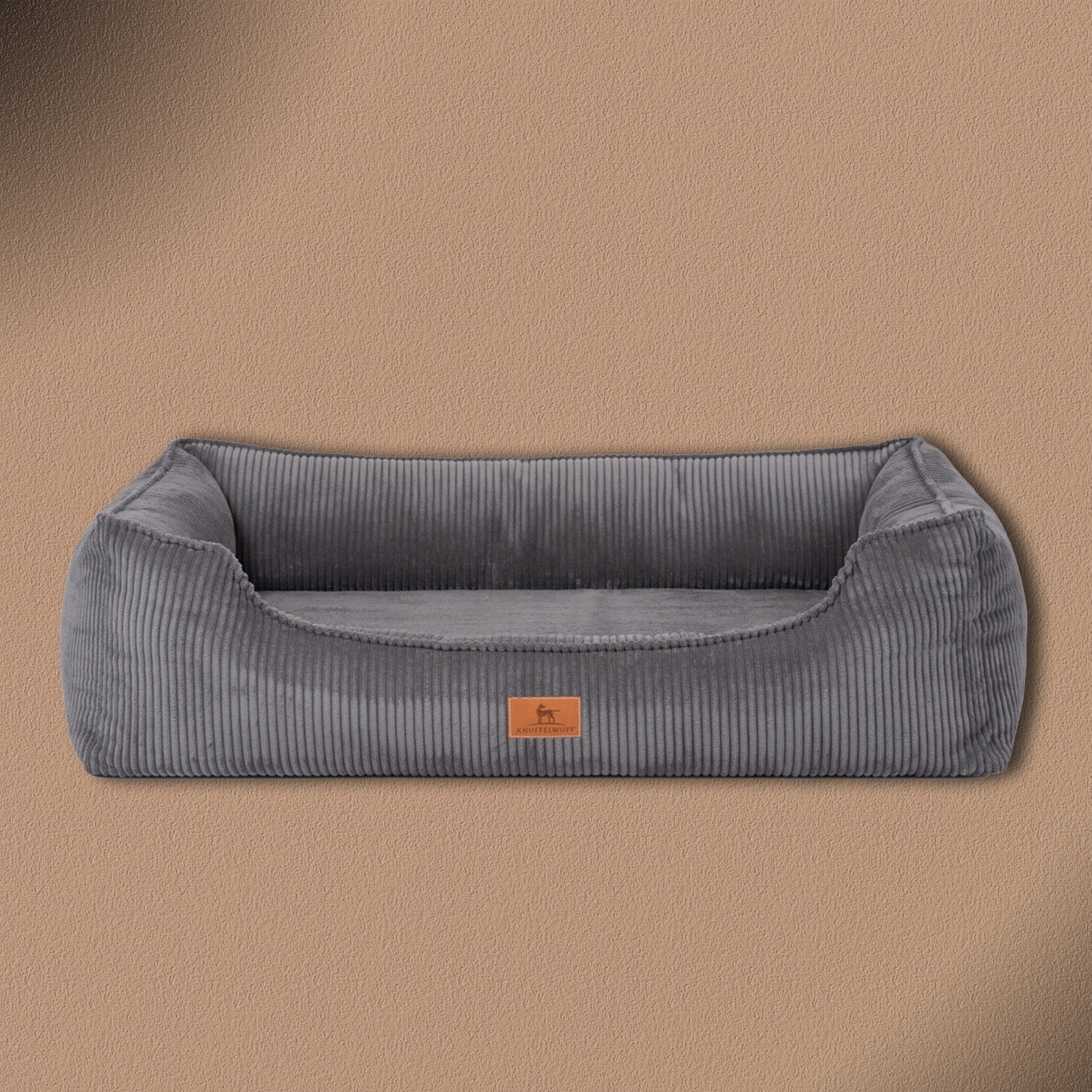 Gesunder Schlaf trifft auf stilvolles Design – das orthopädische Hundebett Nunavut aus hochwertigem Cordstoff vereint elegantes Aussehen mit gelenkschonendem Komfort.