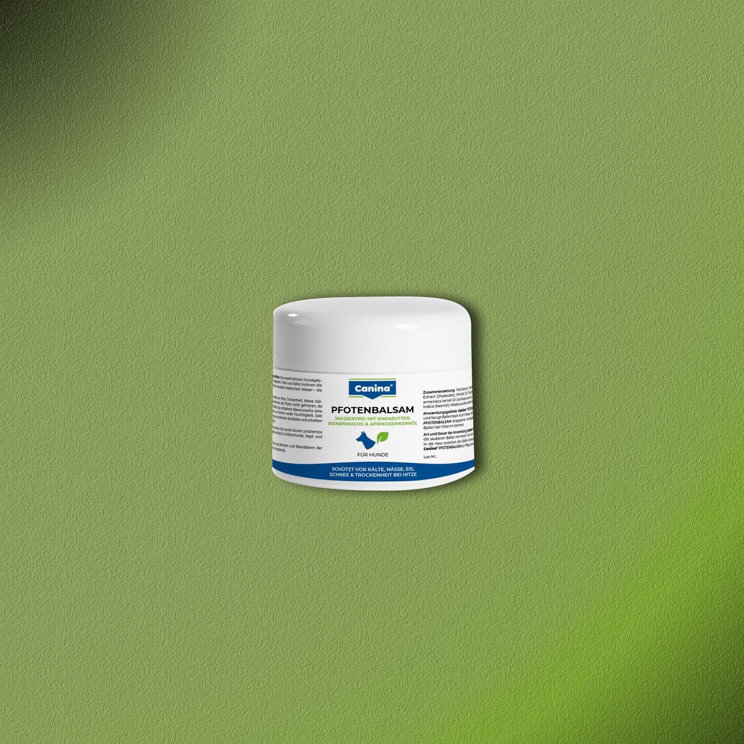 Canina® PFOTENBALSAM verhindert das Austrocknen der Ballen und beugt Ballenrissen durch Nässe, Kälte, Eis und Schnee vor. Zudem schützt er die Pfoten zuverlässig vor Streusalz.