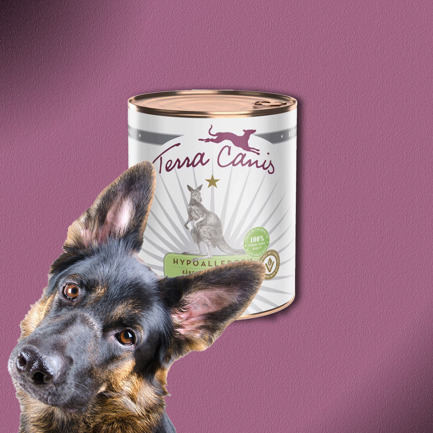 Gerade für Hunde mit Allergien und Unverträglichkeiten ist eine maximale Rohstoffqualität elementar. Die Terra Canis HYPOALLERGEN-Menüs bestehen aus reinem Muskelfleisch (60 %) einer einzigen, exotischen Proteinquelle. Dieses Fleisch wird durch ein allergenarmes Gemüse ergänzt. Rapsöl liefert hochwertige Fettsäuren und unterstützt den Magen-Darm-Trakt, ebenso positiv für Haut und Fell. Ein ausgewogener Vitamin-Mineralstoff-Mix sichert die Versorgung mit allen essentiellen Vitaminen, Mineralstoffen und Spurenelementen. Terra Canis HYPOALLERGEN ist geeignet für Hunde mit Futtermittelallergien/-unverträglichkeiten und zur Durchführung einer Ausschlussdiät.