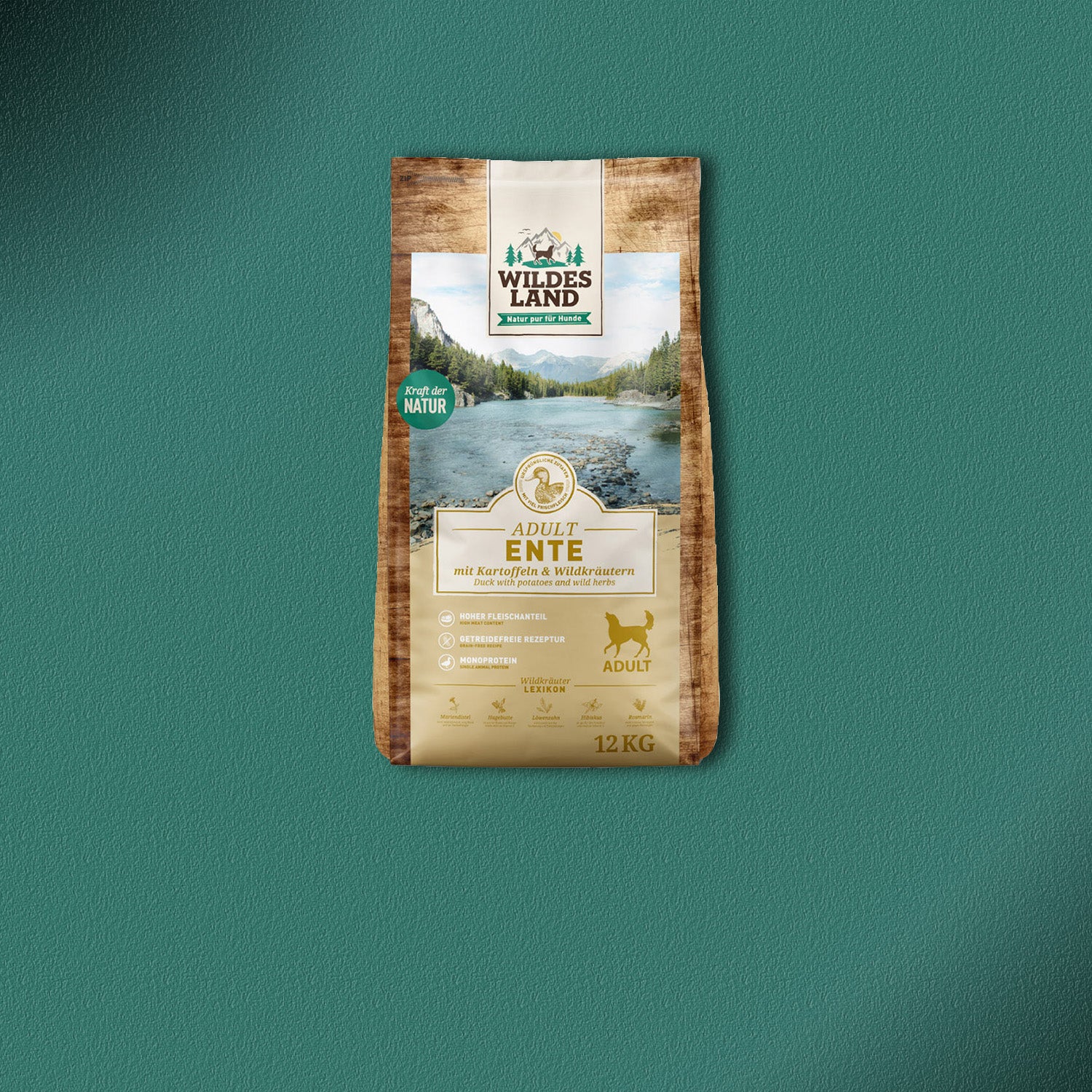 Das Wildes Land Trockenfutter Ente mit Kartoffeln und Wildkräutern basiert auf der Kraft der Natur. Es überzeugt durch eine hochwertige Zusammensetzung mit hohem Fleischanteil aus frischem und getrocknetem Entenfleisch sowie durch seinen unvergleichlichen Geschmack und leckeren Geruch.