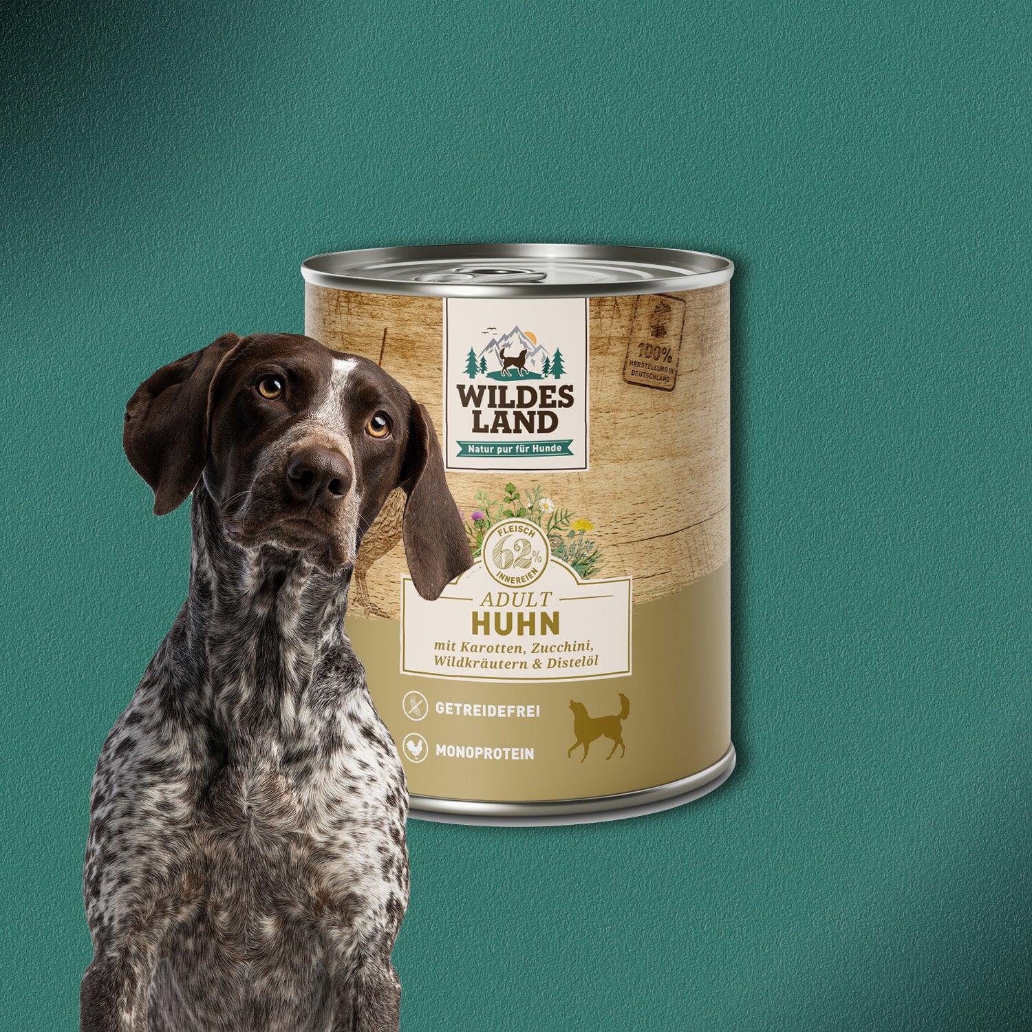 30x800g Wildes Land Adult Huhn mit Karotten, Zucchini, Wildkräutern & Distelöl