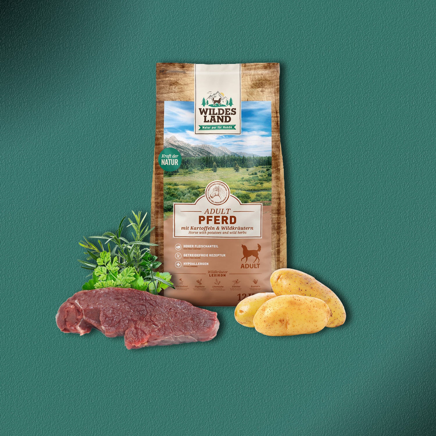 2x12kg Wildes Land Adult Pferd mit Kartoffeln, Wildkräutern & Distelöl