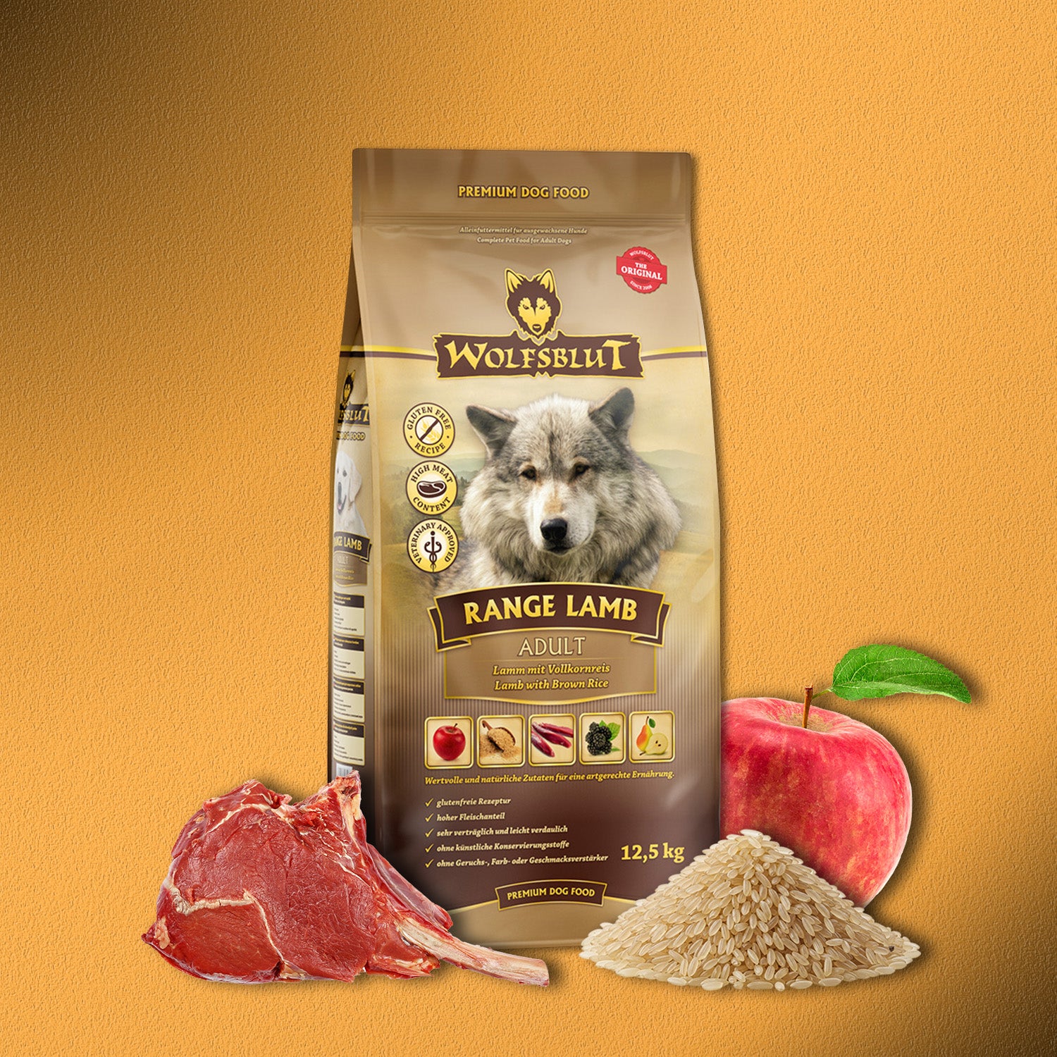 Das WOLFSBLUT Range Lamb Adult ist ein hochwertiges Alleinfuttermittel für ausgewachsene Hunde, das die ursprüngliche Ernährung des Wolfs mit modernen ernährungswissenschaftlichen Erkenntnissen verbindet. Das frische Lamm liefert wertvolle Proteine und Mineralstoffe, während Superfoods wie Vollkornreis, Äpfel, Erbsen und Brombeeren wichtige Nährstoffe und Antioxidantien liefern – getreidefrei und optimal für empfindliche Hunde.